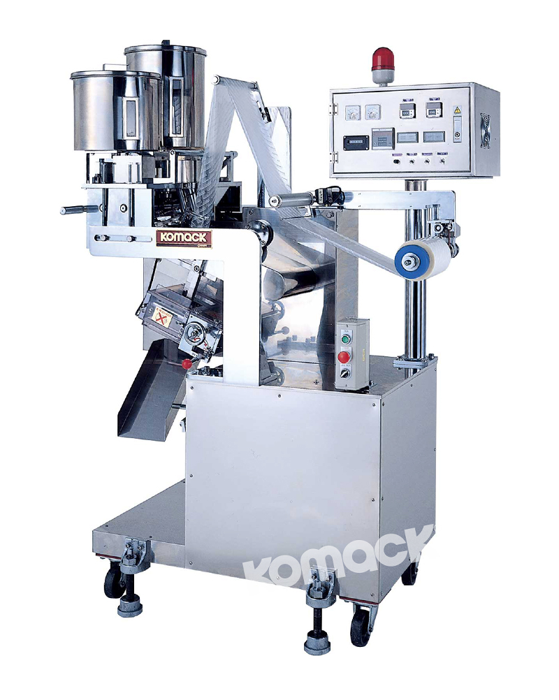 本機是2列袋式粉末、顆粒等專用充填包裝機。寬度方向制成的2列包裝袋中能同時填充包裝2種不同的粉末?顆粒。可制作3邊封或4邊封包裝袋。